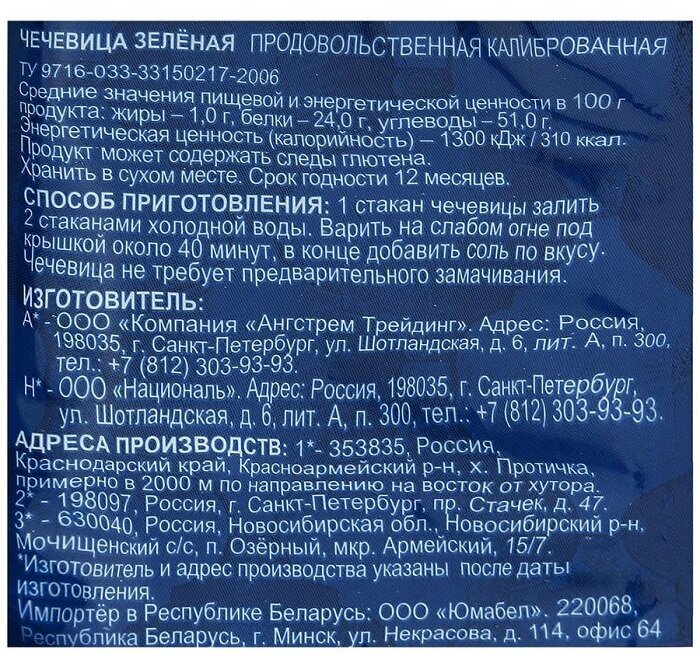 Чечевица зеленая Националь 450г интересное: