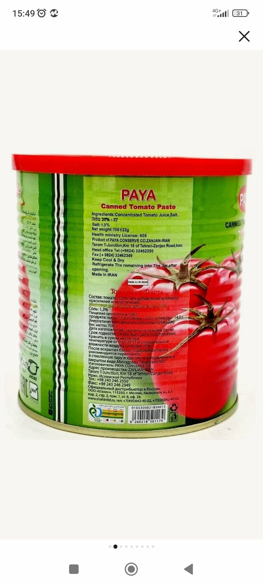 Ниже Вы можете прочитать отзывы на Томатная паста ПАЯ / Иран 700г, ознакомится с подробными характеристиками, посмотреть интересные обзоры и фотографии на Томатная паста ПАЯ / Иран 700г.