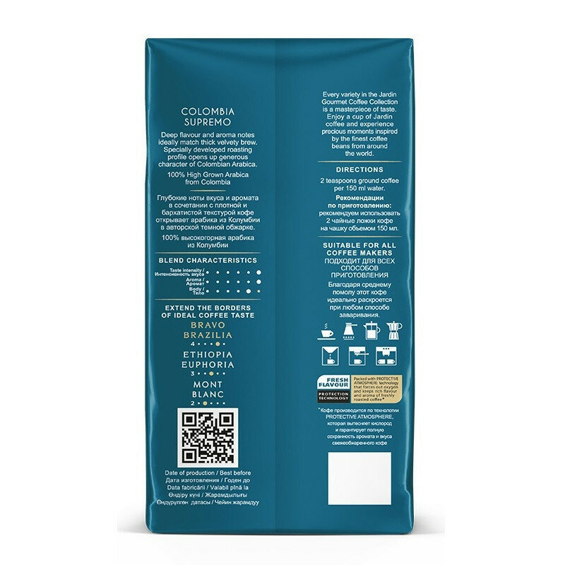 Кофе молотый Jardin Colombia Supremo средней обжарки, 250 г, пакет с клапаном