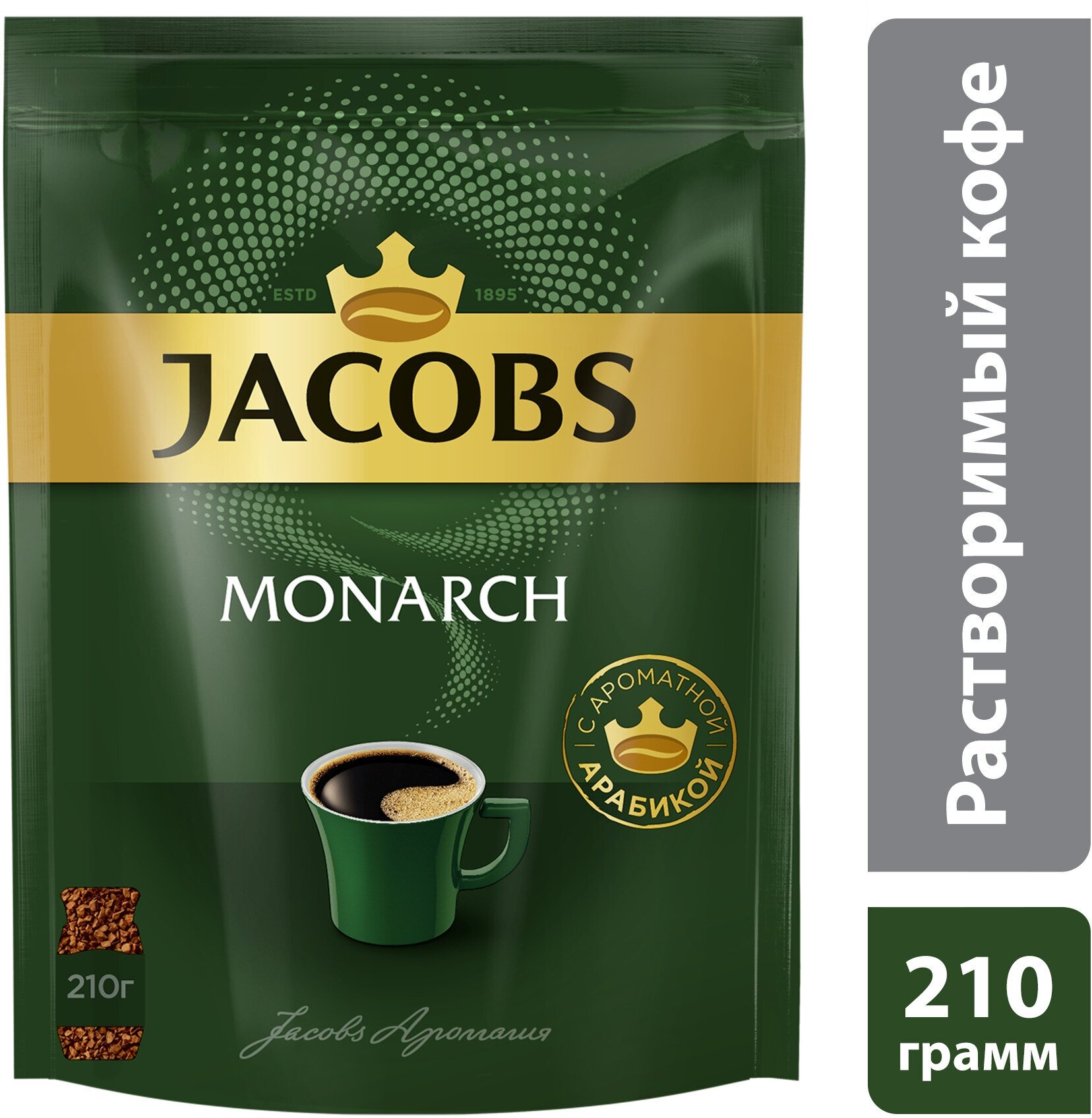 Кофе растворимый JACOBS "Monarch", сублимированный, 210 г, мягкая упаковка, 8052808
