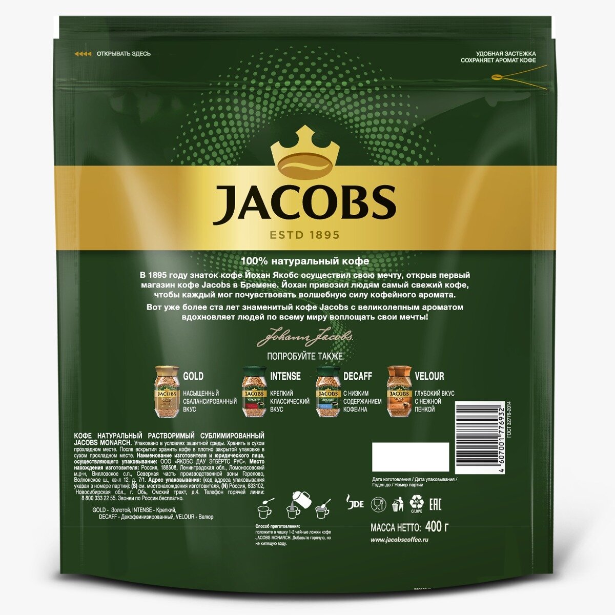 Кофе растворимый Jacobs Monarch сублимированный, пакет, 400 г 1776932