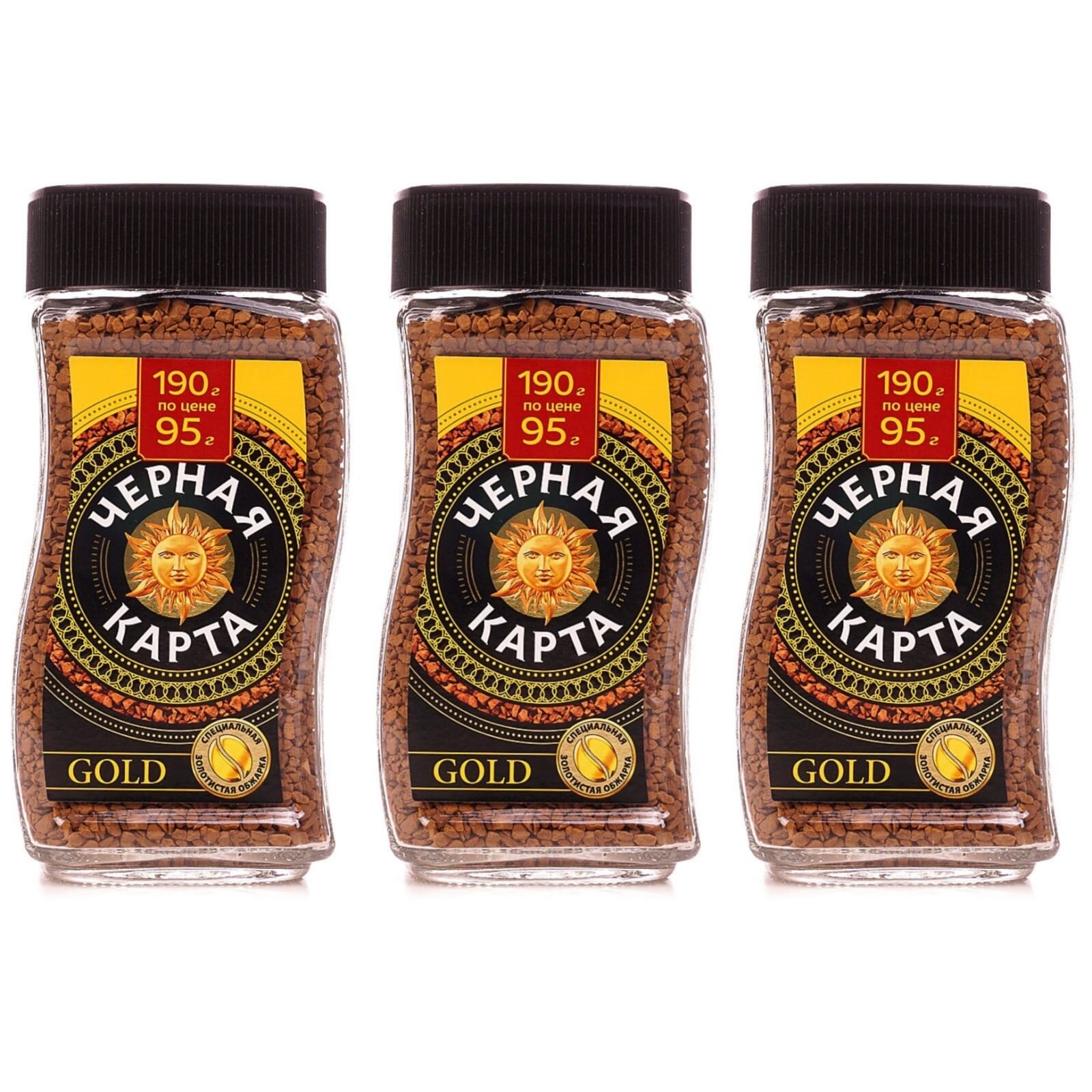 Кофе растворимый Черная карта Gold, стеклянная банка, 3 уп. по 95 г