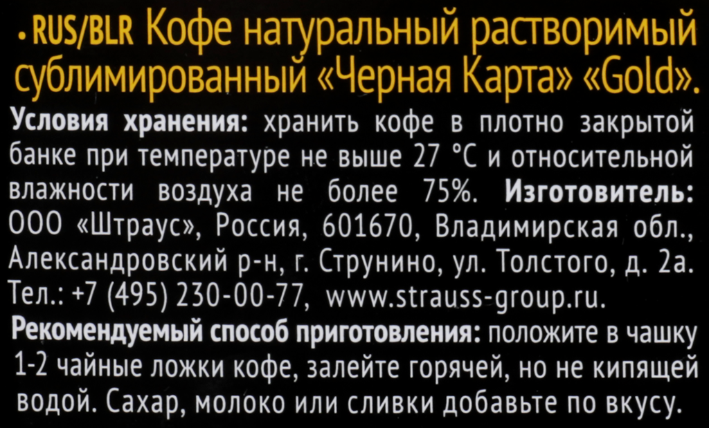 Кофе "Черная Карта", Gold, растворимый, сублимированный, 95 г