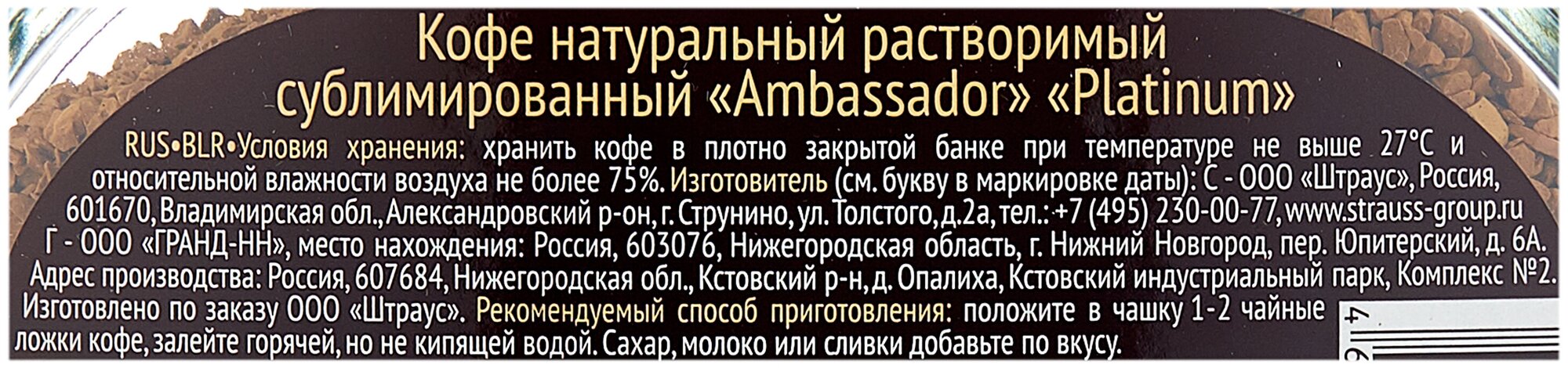 Растворимый кофе сублимированный Амбассадор Platinum, 47,5 г