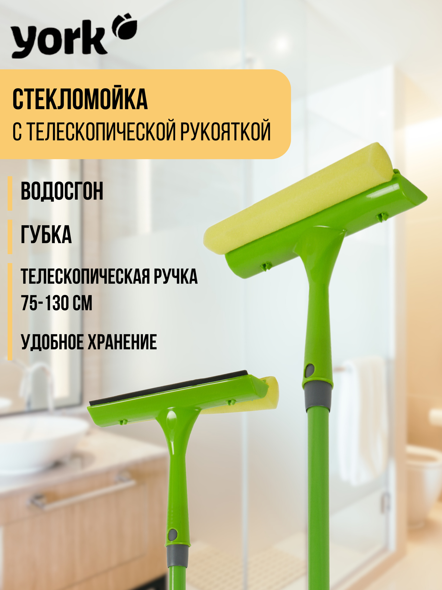 Окномойка (стяжка + губка), телескопическая ручка, 75-130 см, рабочая часть 24,5 см, YORK, 84140, 084140