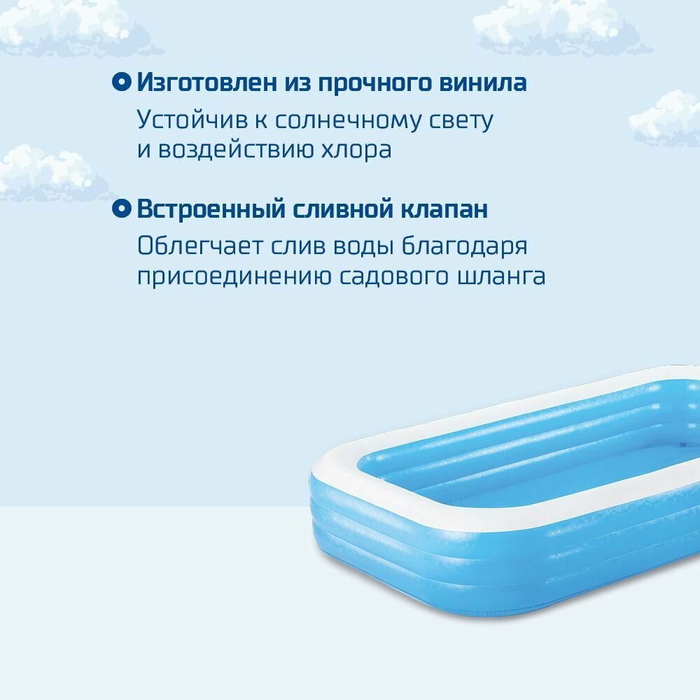 54009 Бассейн надувной прямоугольный голубой Bestway 305х183х56см