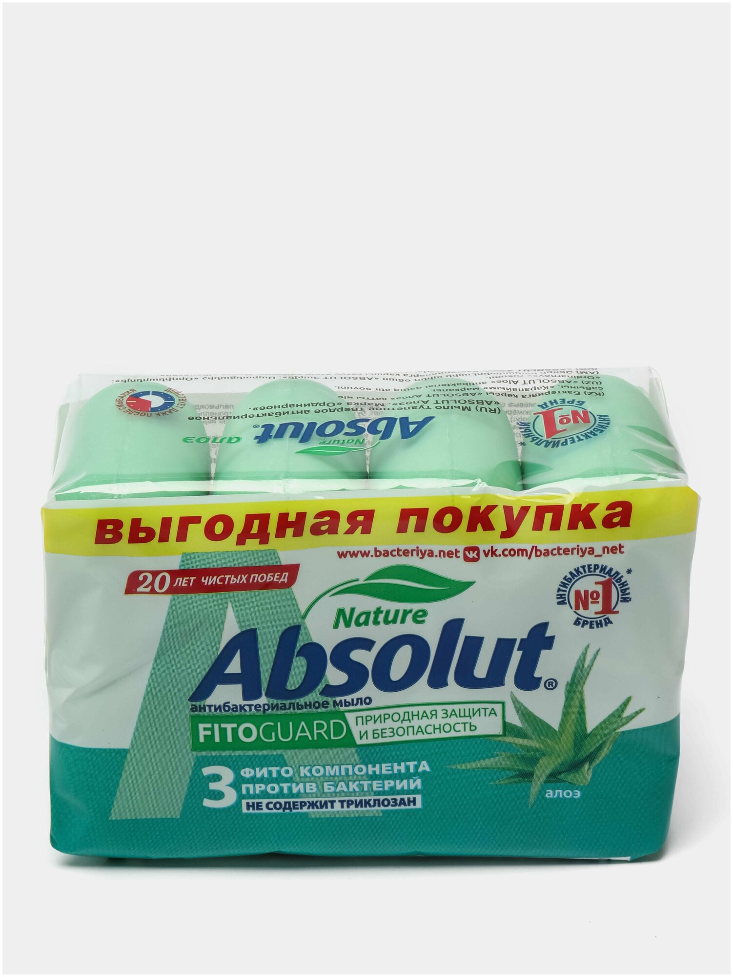 Мыло туалетное антибактериальное 300г ABSOLUT (Абсолют) комплект 4шт х75г "Алоэ",без триклозана,6065