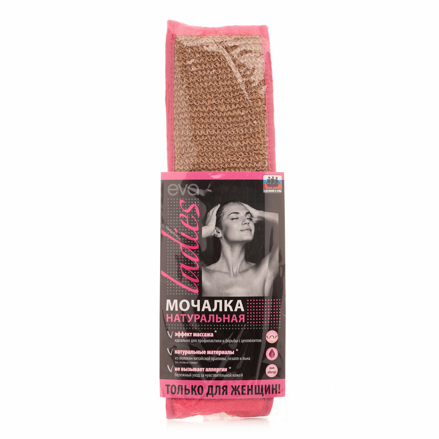 Eva Мочалка с ручками "Ladies", крапива, 72х9см интересное: