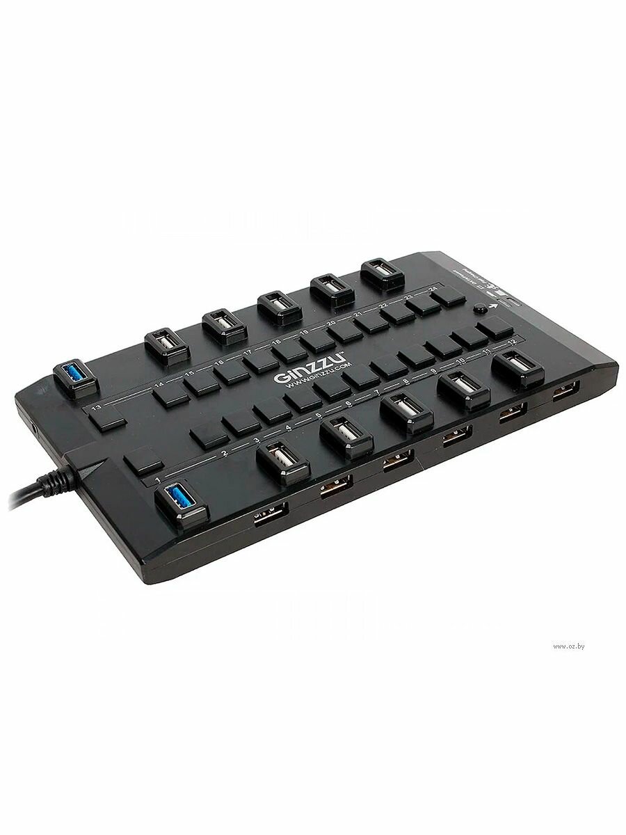 Разветвитель USB GINZZU GR-328UAB 28 портов (4xUSB 3.0 + 24xUSB 2.0 + адаптер) черный (GR-328UAB)