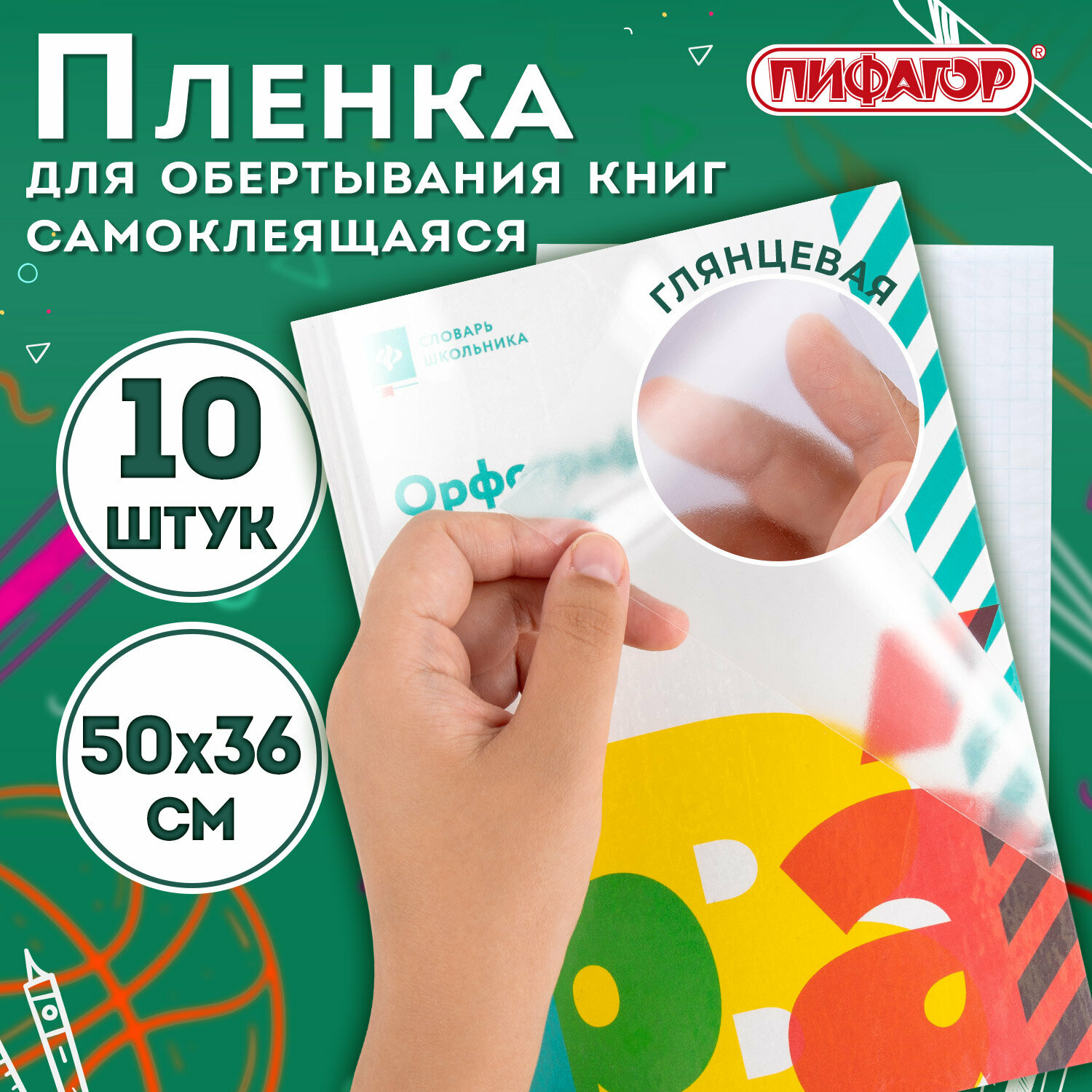 Пифагор Пленка самоклеящаяся для учебников и книг 10 шт 50х36 см, 100 мкм, глянцевая 224317