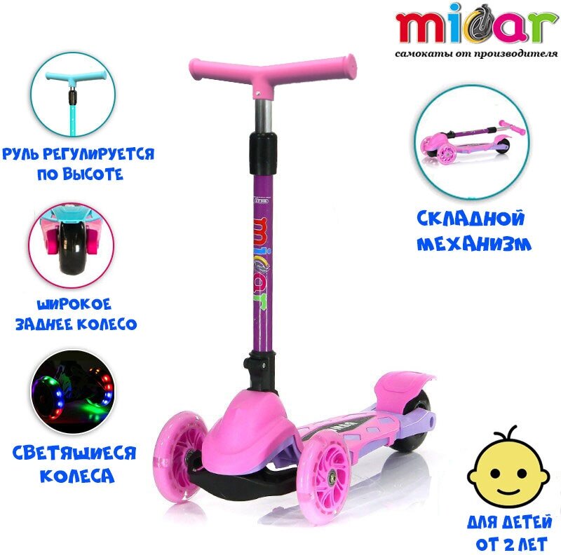 Самокат трехколесный со светящимися колесами Micar Zumba 2022 розовый