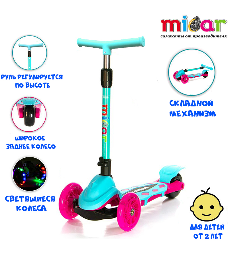 У старшей есть самокат фирмы микар, но другая модель и потяжелее, хотели полегче и это идеальный вариант. До 4-5 лет точно хватит |
