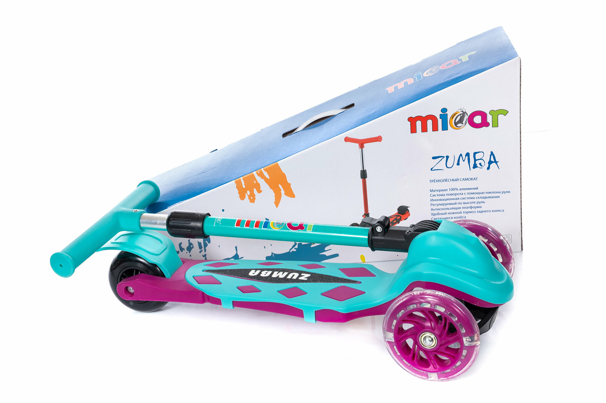 Самокат трехколесный со светящимися колесами Micar Zumba 2022 розовый
