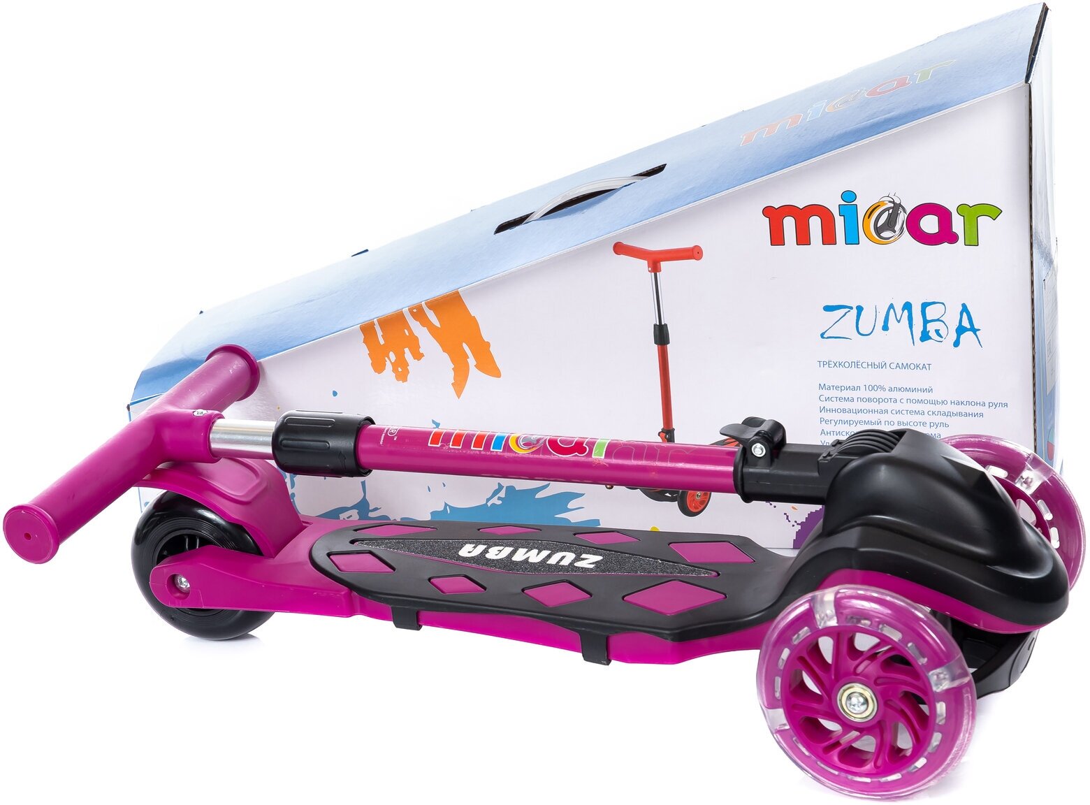 Самокат трехколесный со светящимися колесами Micar Zumba 2022 розовый