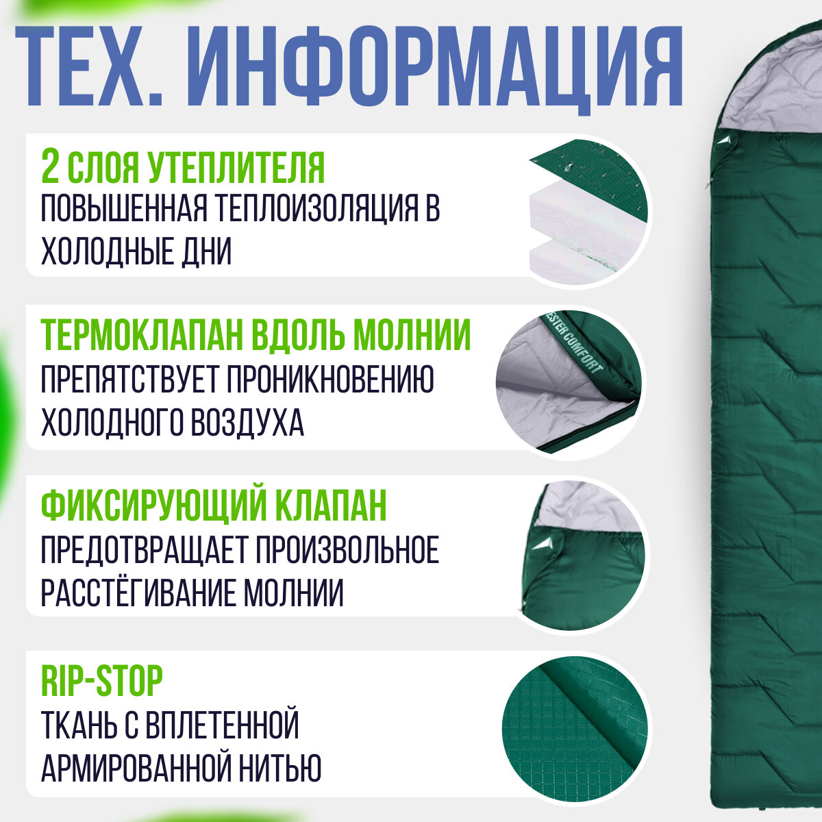 Спальный мешок TREK PLANET Chester Comfort, зеленый (правая молния)