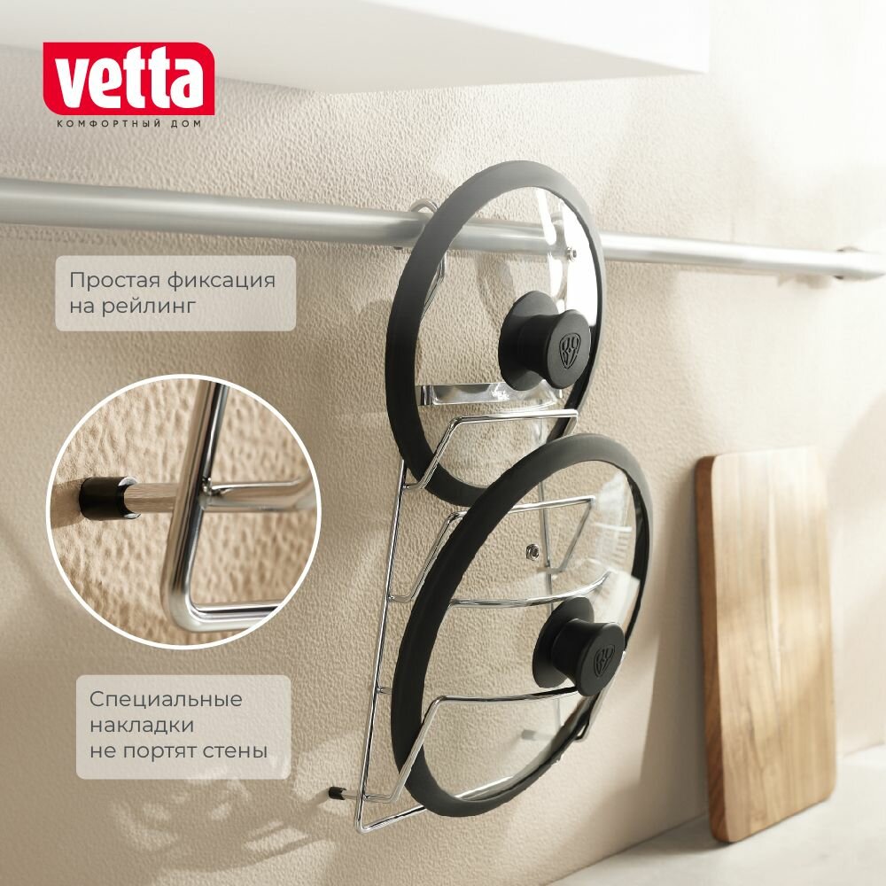 Полка для крышек для посуды на рейлинг 21X11X37 СМ, VETTA CWJ204A интересное: