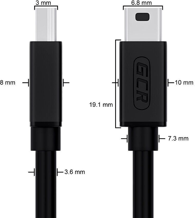 GCR Кабель 1.5m USB 2.0, AM/mini, черный, 28/28 AWG, экран, армированный, морозостойкий