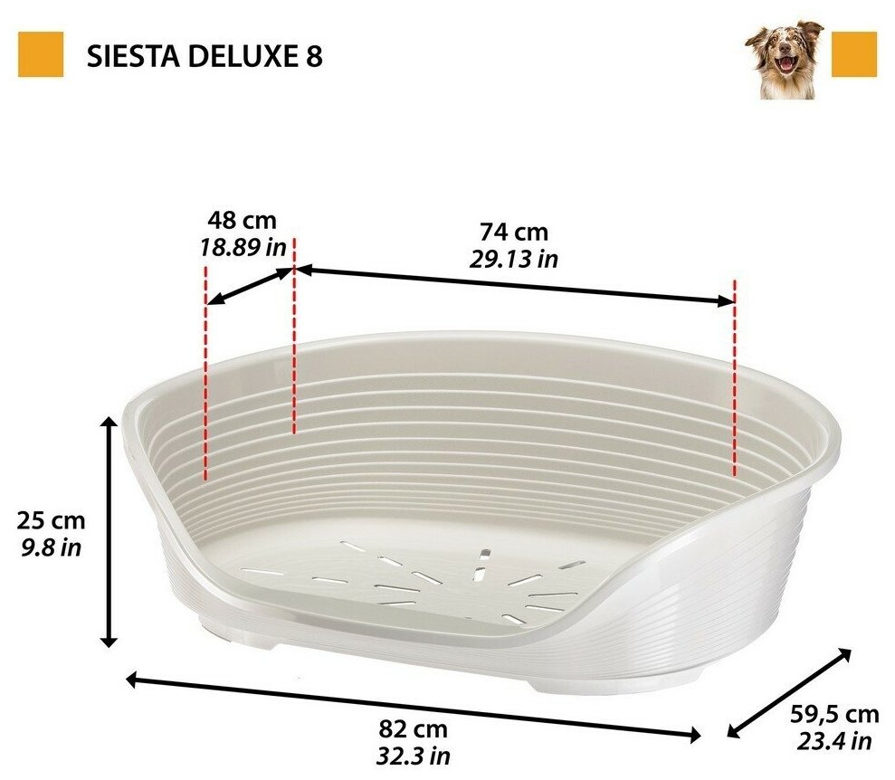 Лежак пластиковый для собак FERPLAST SIESTA DELUXE 8, 82 х 59,5 х 25 см (белый)