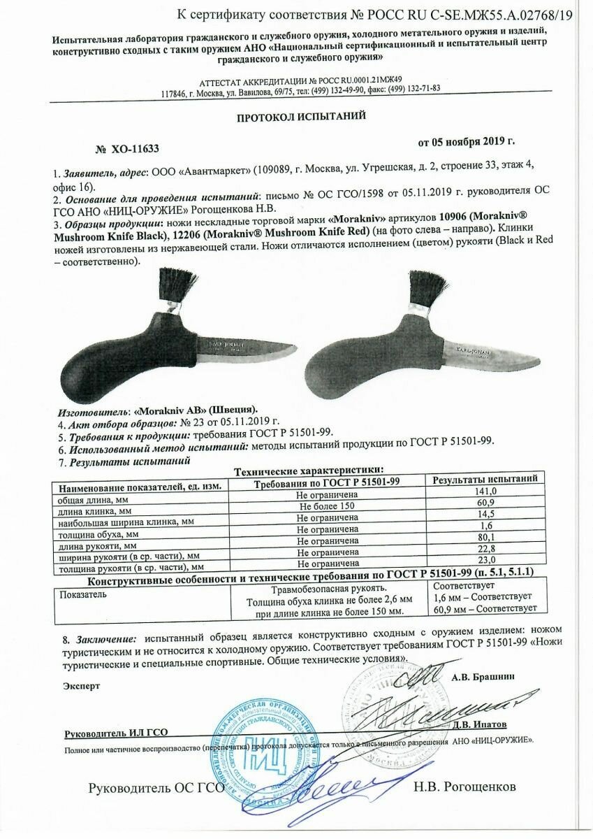 | Назначение ножа | для грибов |