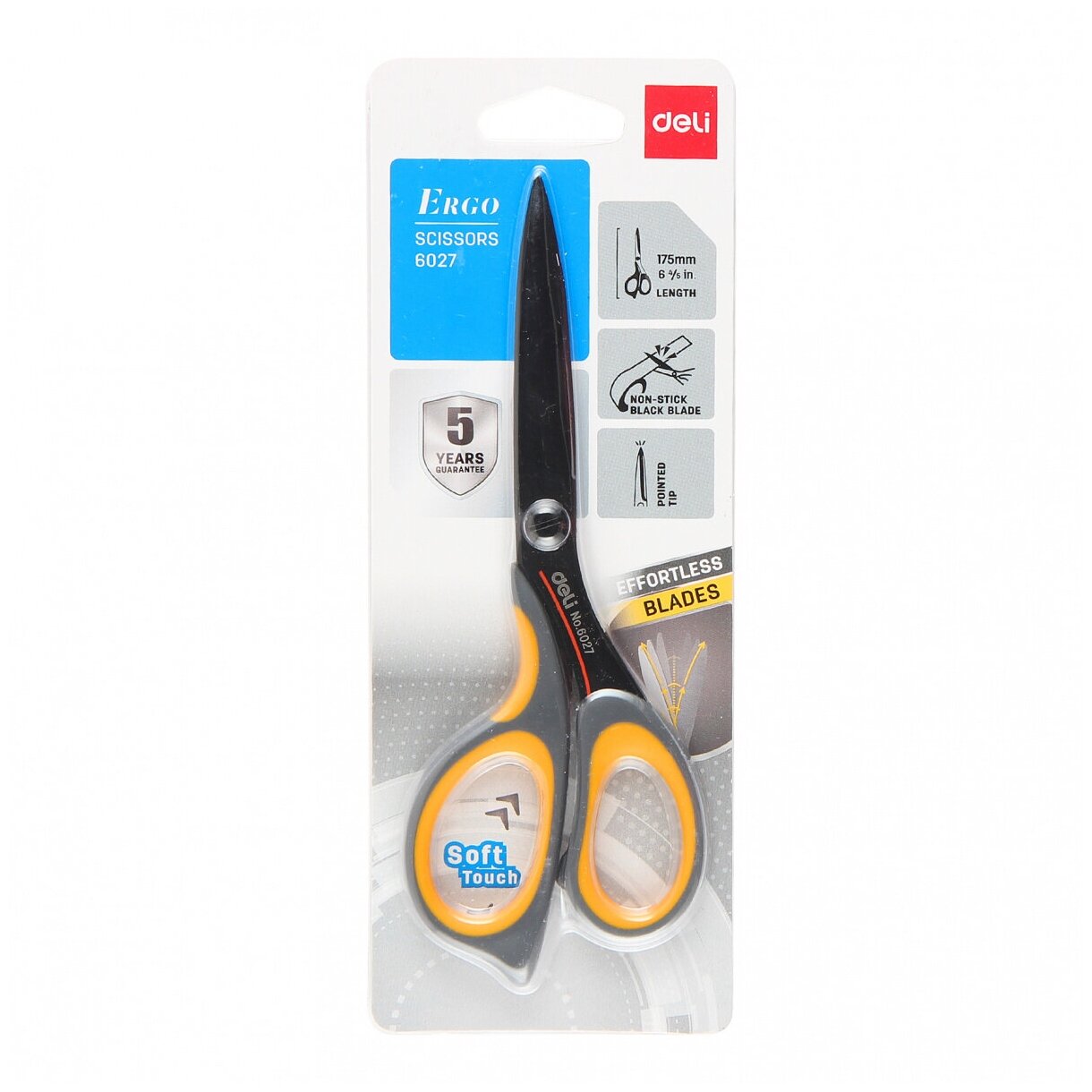 Ножницы Deli E6027 Expert Soft-touch универсальные 175мм ручки с резиновой вставкой сталь ассорти блистер