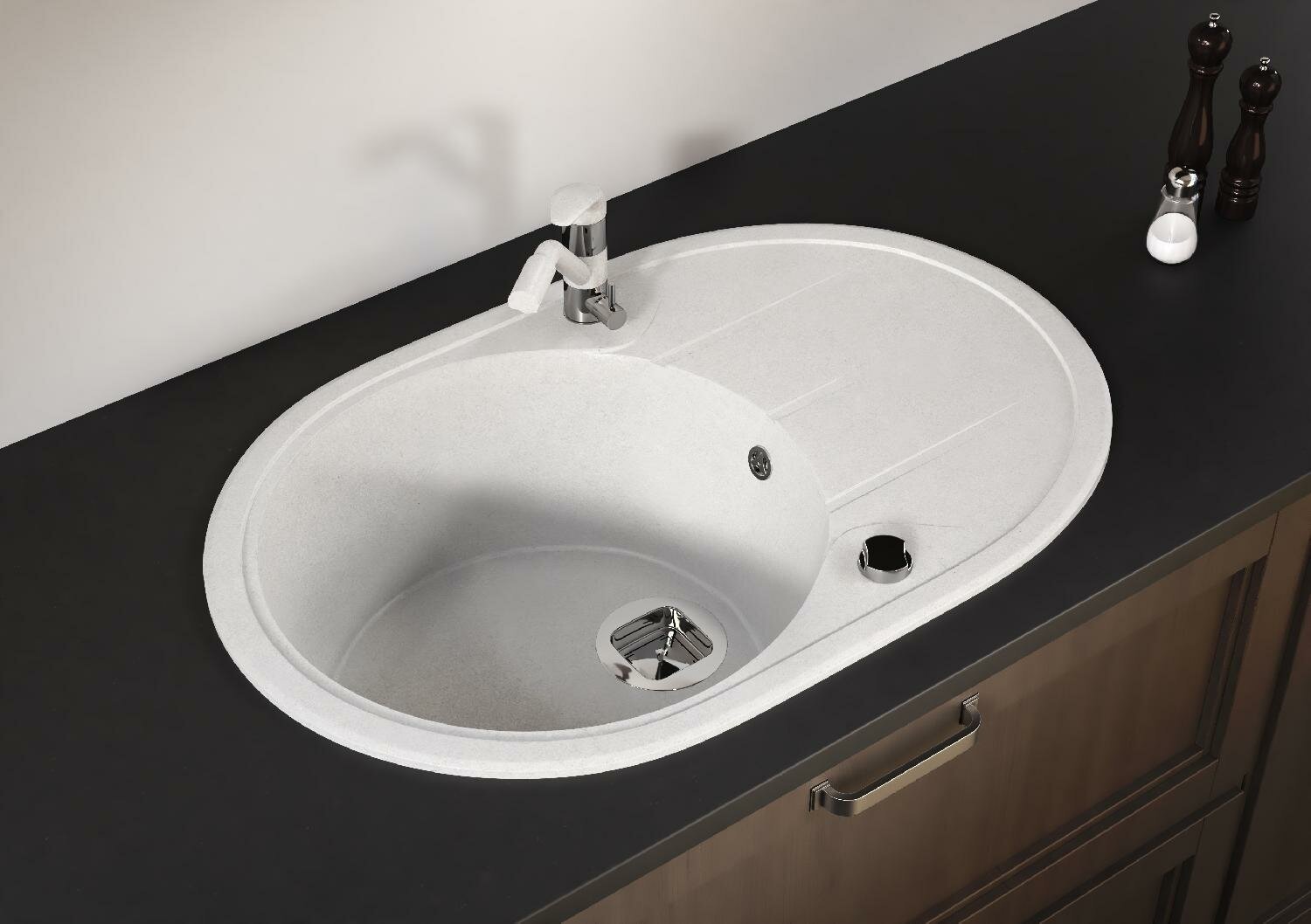 Мойка для кухни кварцевая овальная TOLERO Classic R-116 черная (Уголь)