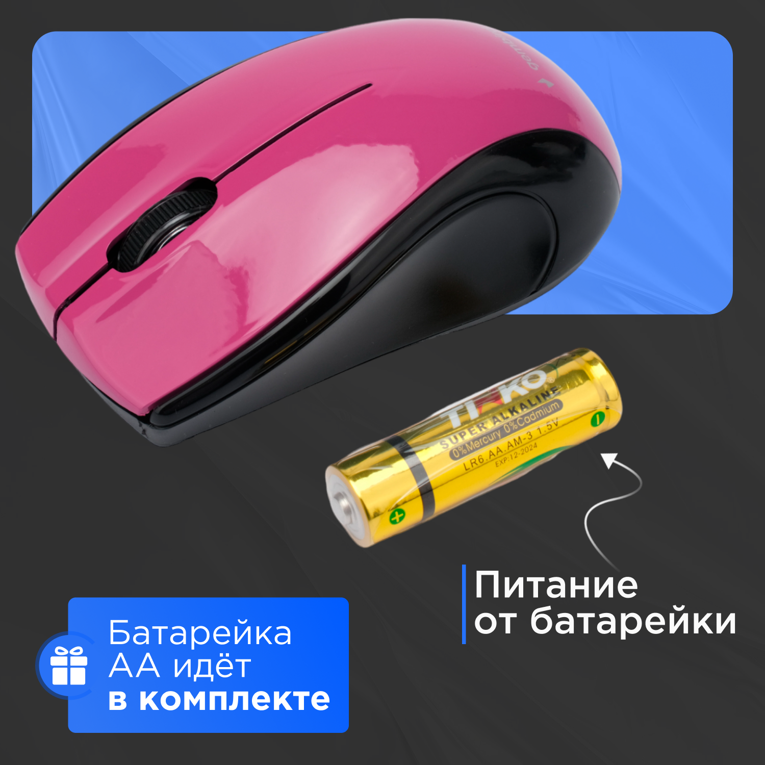 Мышь беспроводная Gembird MUSW-320-P, 2.4ГГц, фиолетовый, 2 кнопки+колесо-кнопка, 1000 DPI, батарейки в комплекте, блистер