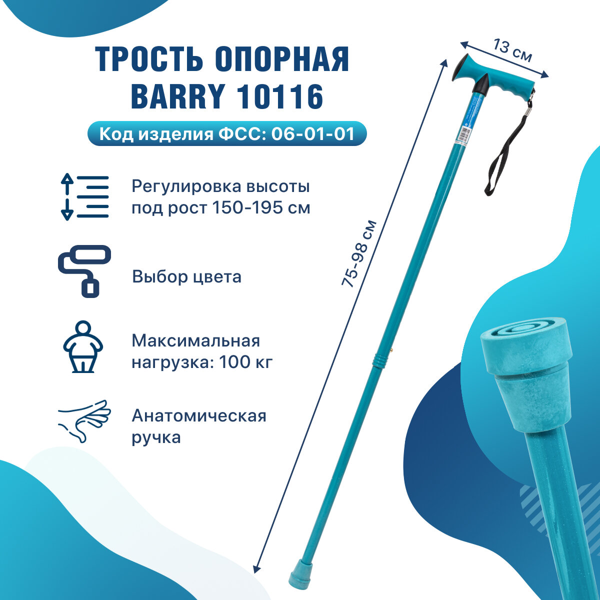 | Плюсы: | Отличная трость,удобная ручка резиновая мягкая,лёгкая |