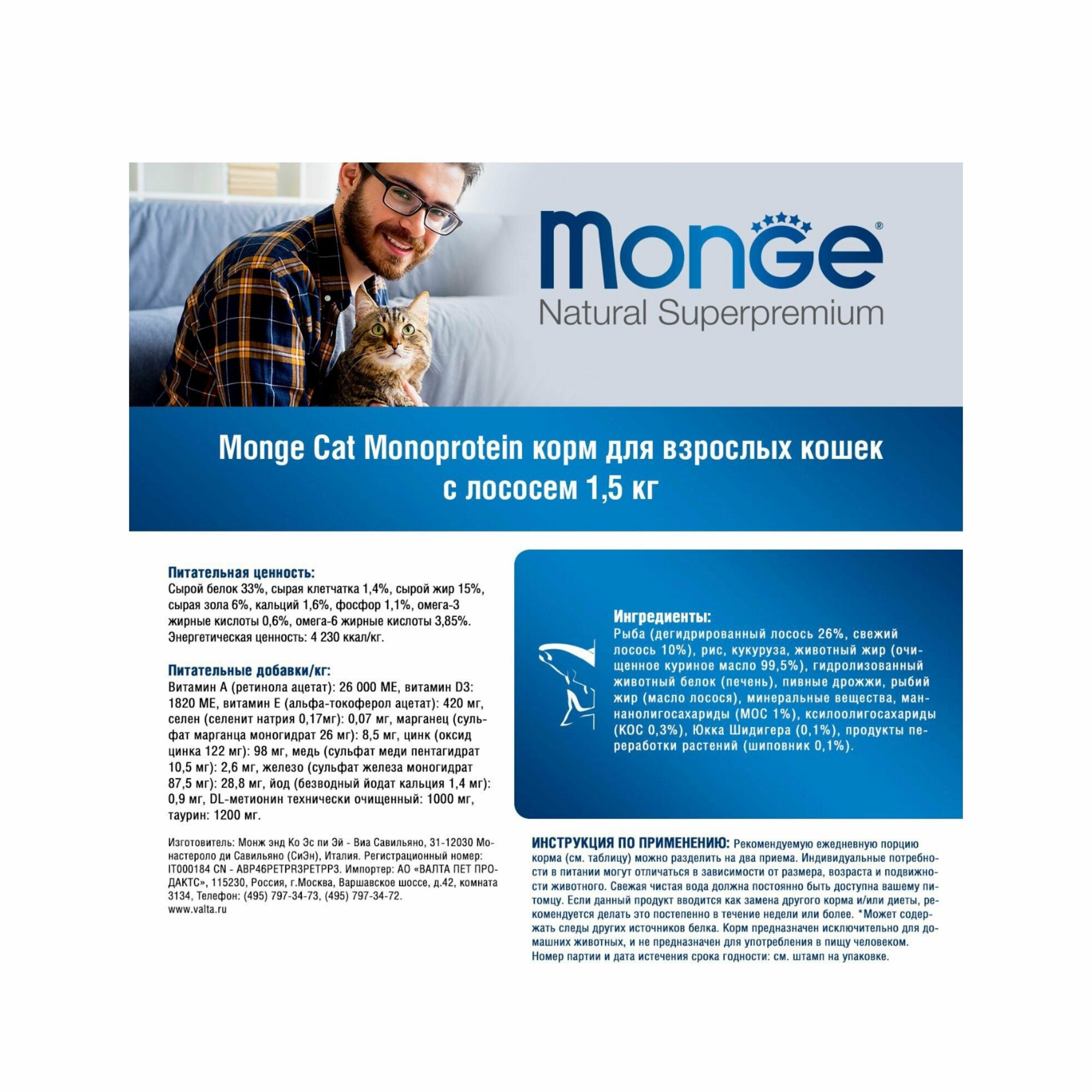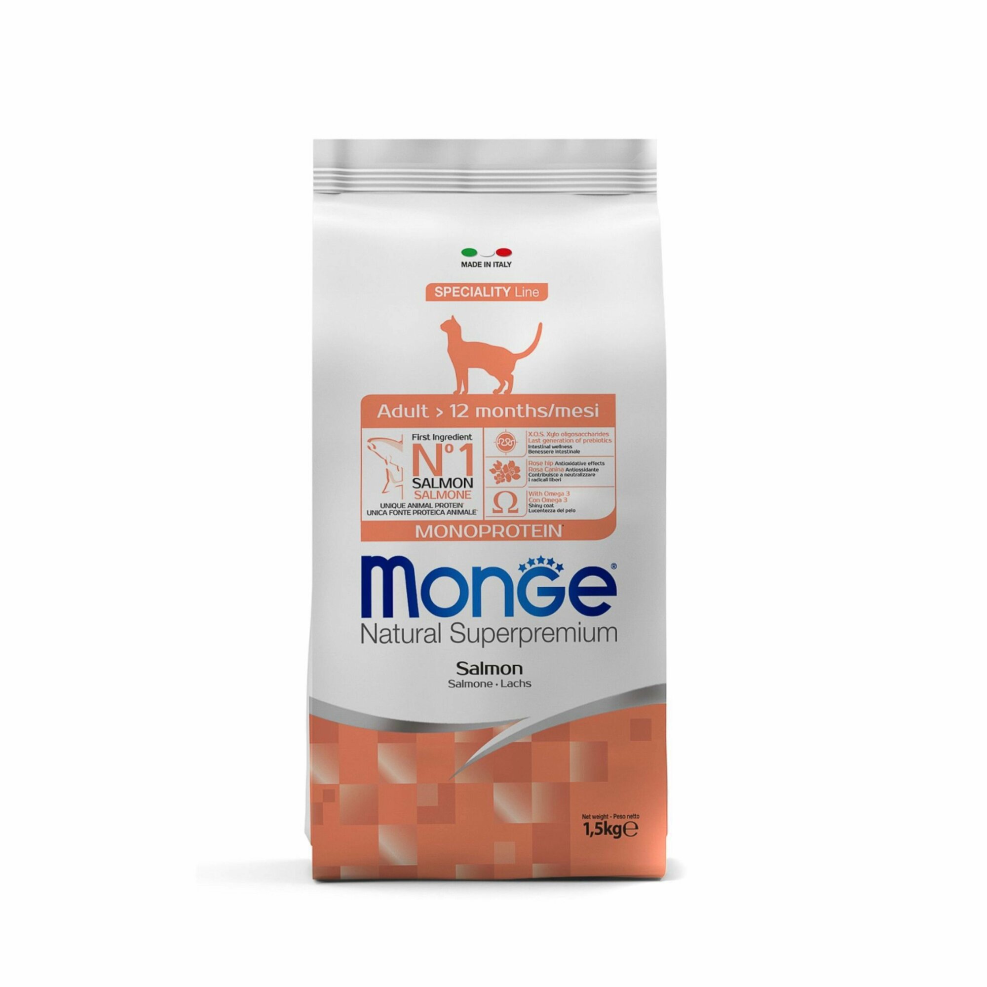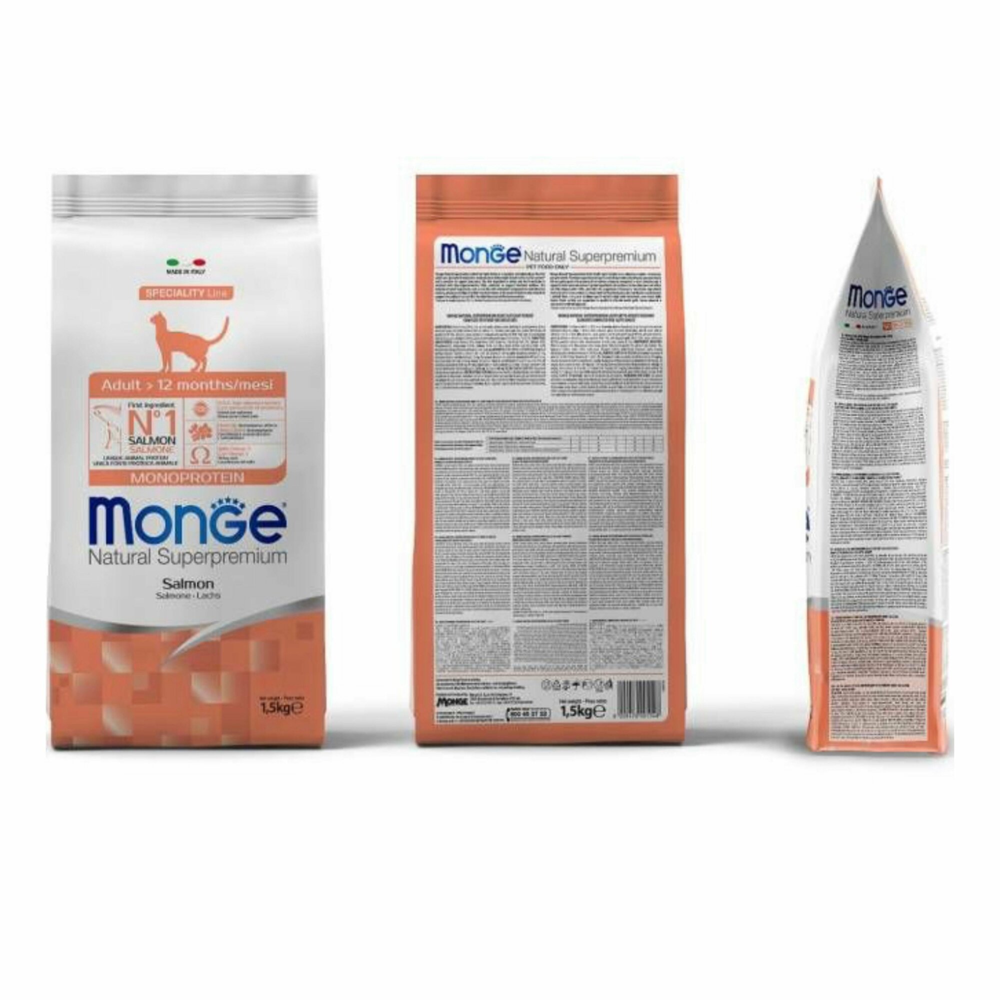 Монж Кэт Эдалт для взрослых кошек с лососем / Monge Cat 1,5 кг (от 2 шт в заказе)
