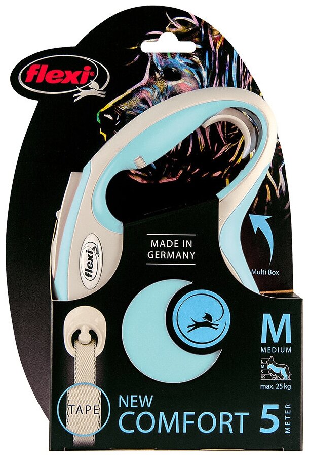 Рулетка FLEXI New Comfort XS до 12кг, 3м ремень, голубая