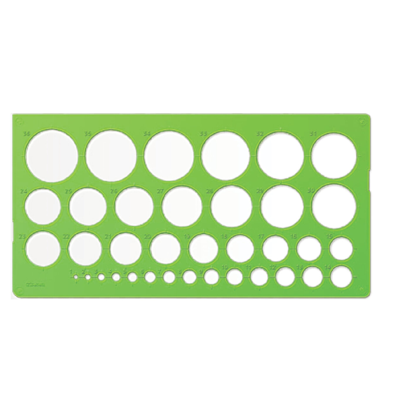 Трафарет окружностей, 36 элементов диаметром от 1 до 36 мм, зеленого цвета, ТТ21 - 1 шт.