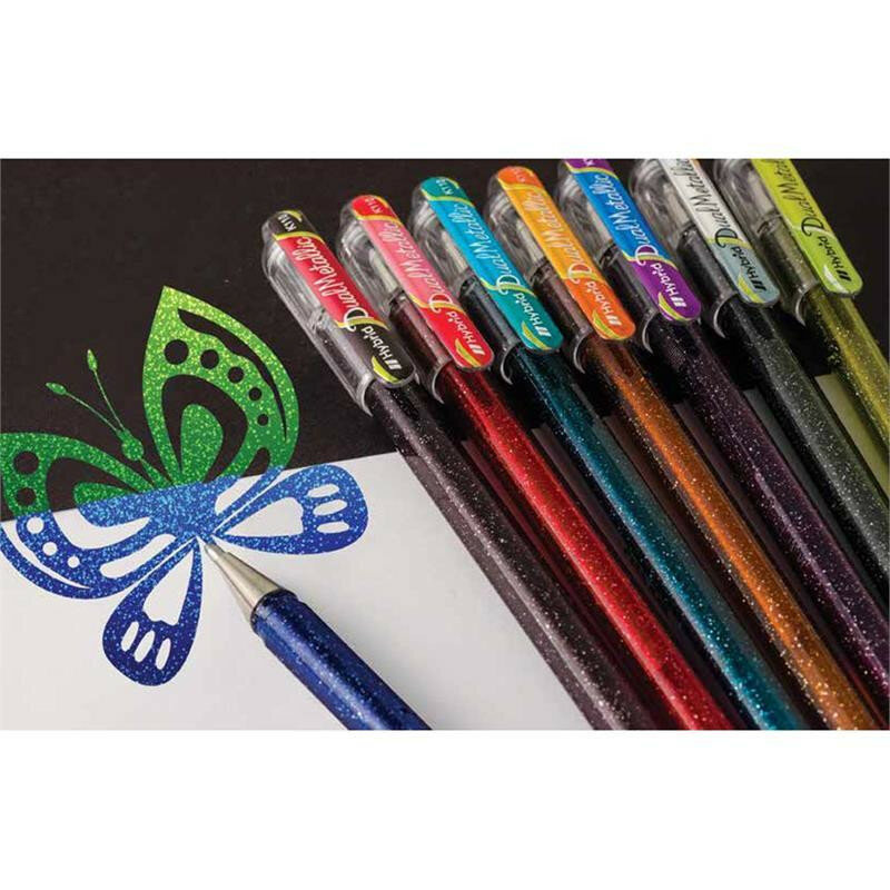 Комплект 9 штук, Ручка гелевая Pentel Hybrid Dual Metallic 1мм хамел роз+зелен&зол K110-DMPX