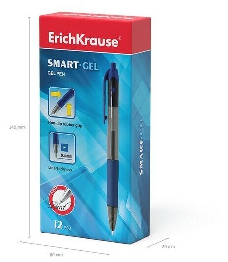 Ручка гелевая автоматическая ErichKrause Smart-Gel, цвет чернил синий (12 шт. в упаковке)