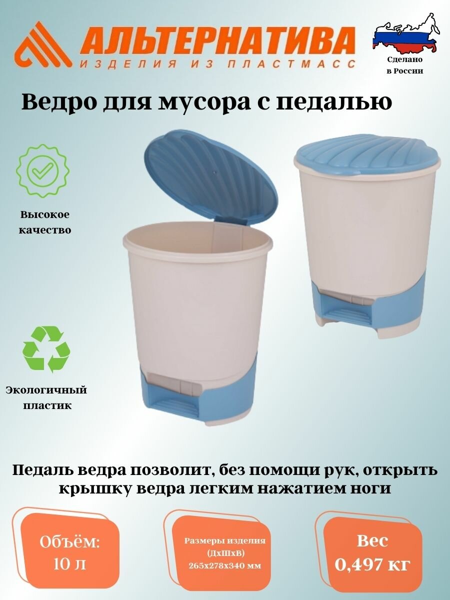 ЗПИ Альтернатива Ведро для мусора Альтернатива, с педалью, 10 л, светло-бежевый/синий