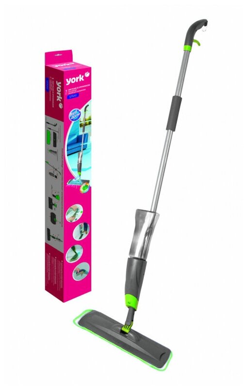 Швабра плоская с насадкой YORK из микрофибры и системой распыления жидкости""