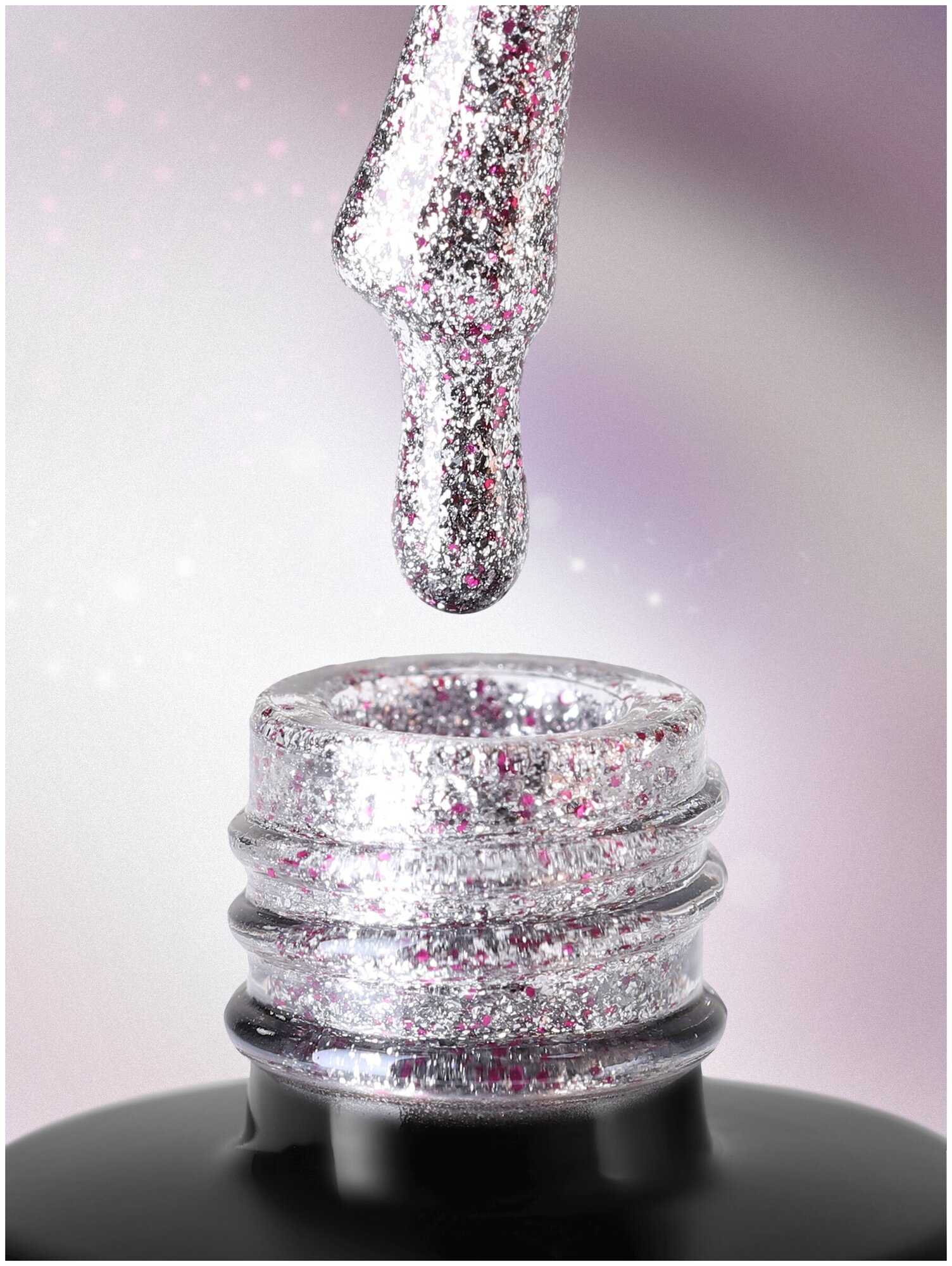 Гель лак цветной Vogue Nails, для маникюра, с блестками, серебристый, 10 мл