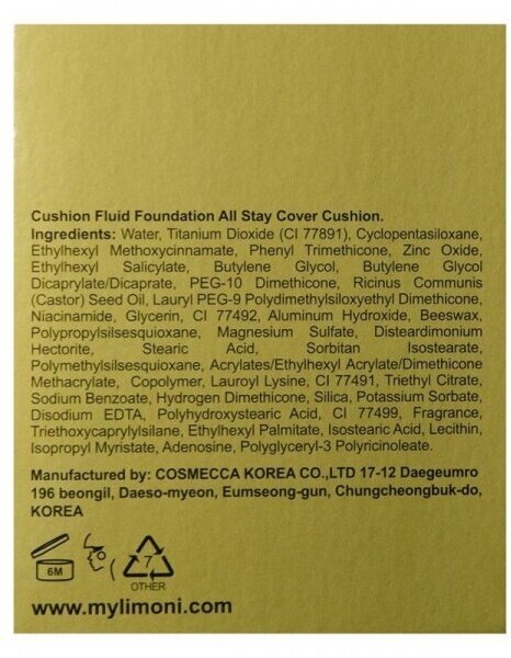 Купить Тональный флюид кушон LIMONI All Stay Cover Cushion SPF 35 / PA++ Galaxy т.01 Light 1 шт