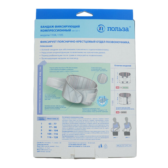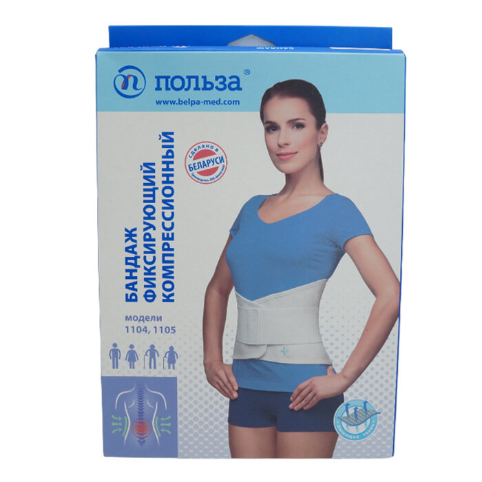 Бандаж фиксирующий компрессионный модель 1105 размер 4, обхват талии 104-116 см (белый)
