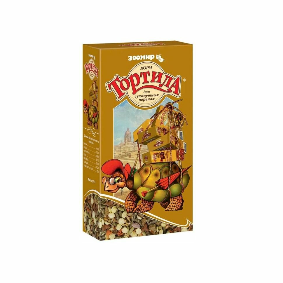 Зоомир "Тортила" корм для сухопутных черепах упаковка, 170 гр