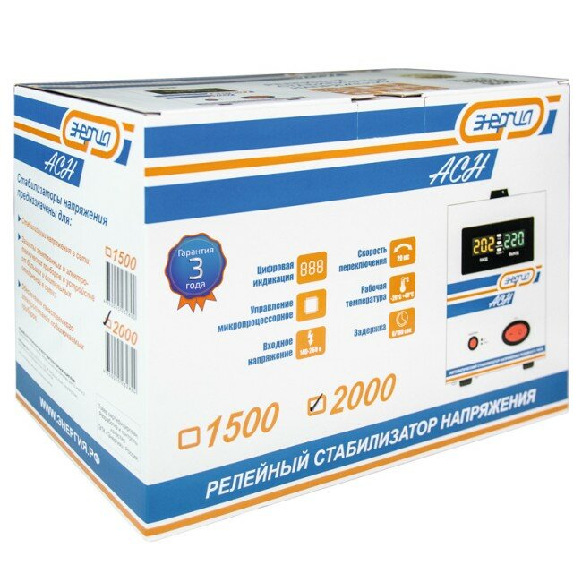 Стабилизатор напряжения энергия АСН 2000 с цифр. дисплеем