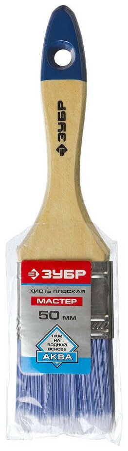 ЗУБР Аква 50 мм, 2'' светлая искусственная щетина, деревянная ручка, Плоская кисть, мастер (4-01007-050)