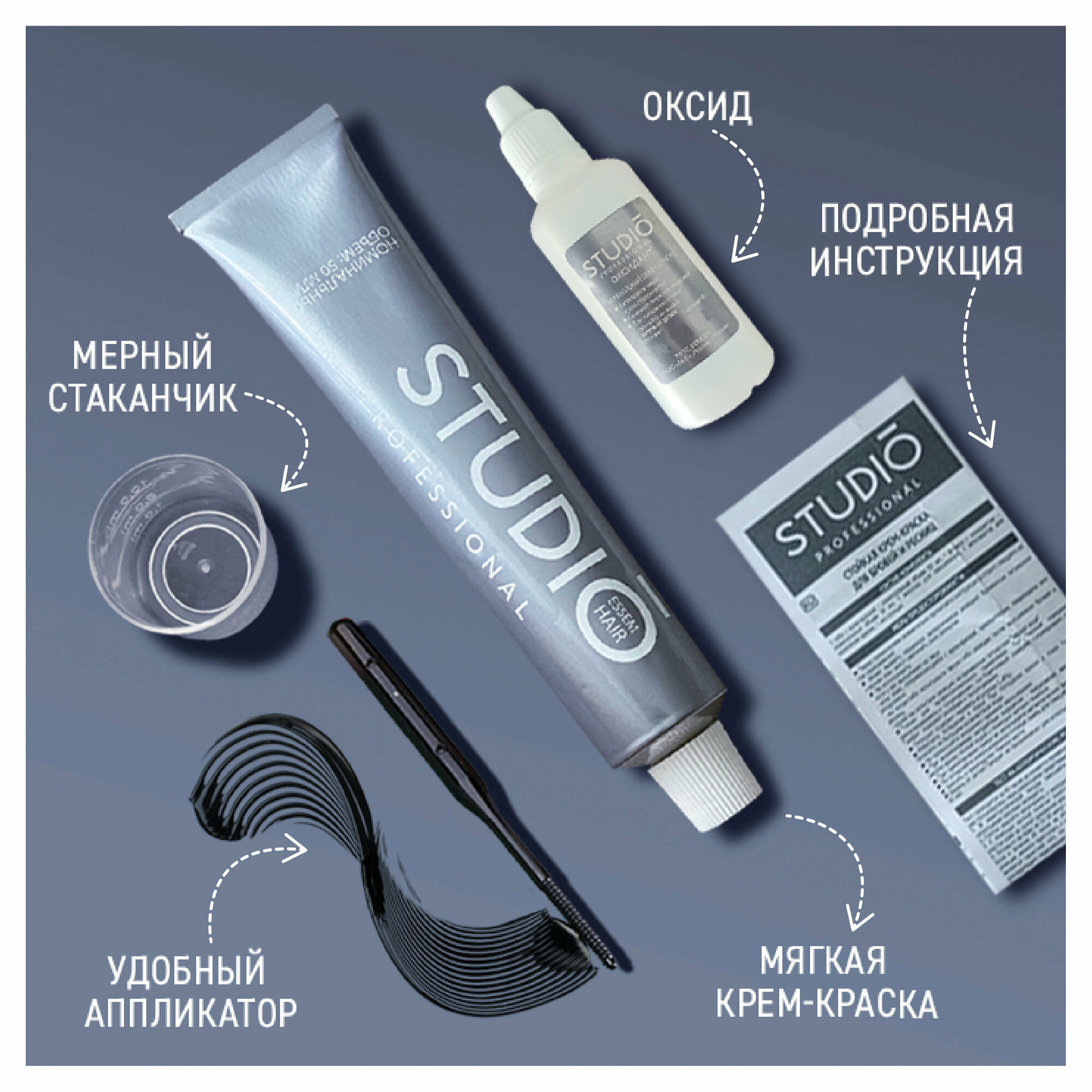 Комплект для окрашивания бровей и ресниц STUDIO PROFESSIONAL графит 50+30 мл