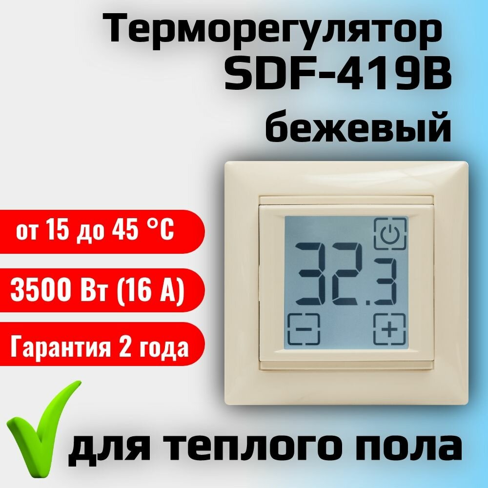Терморегулятор теплого пола сенсорный SpyHeat SDF-419B (встраиваемый) бежевый