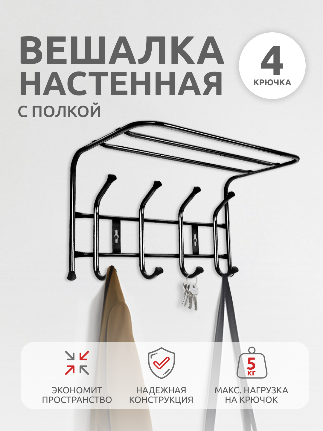 СохранитьВешалка настенная НИКА ВП4, черный, 4 рожков, полка интересное: