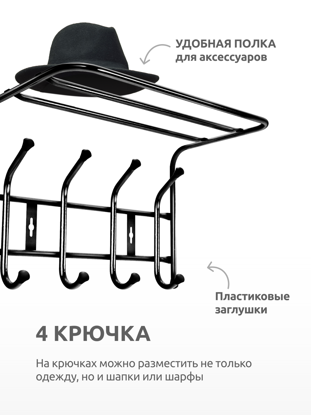 | Количество крючков на вешалке | 4 шт. |