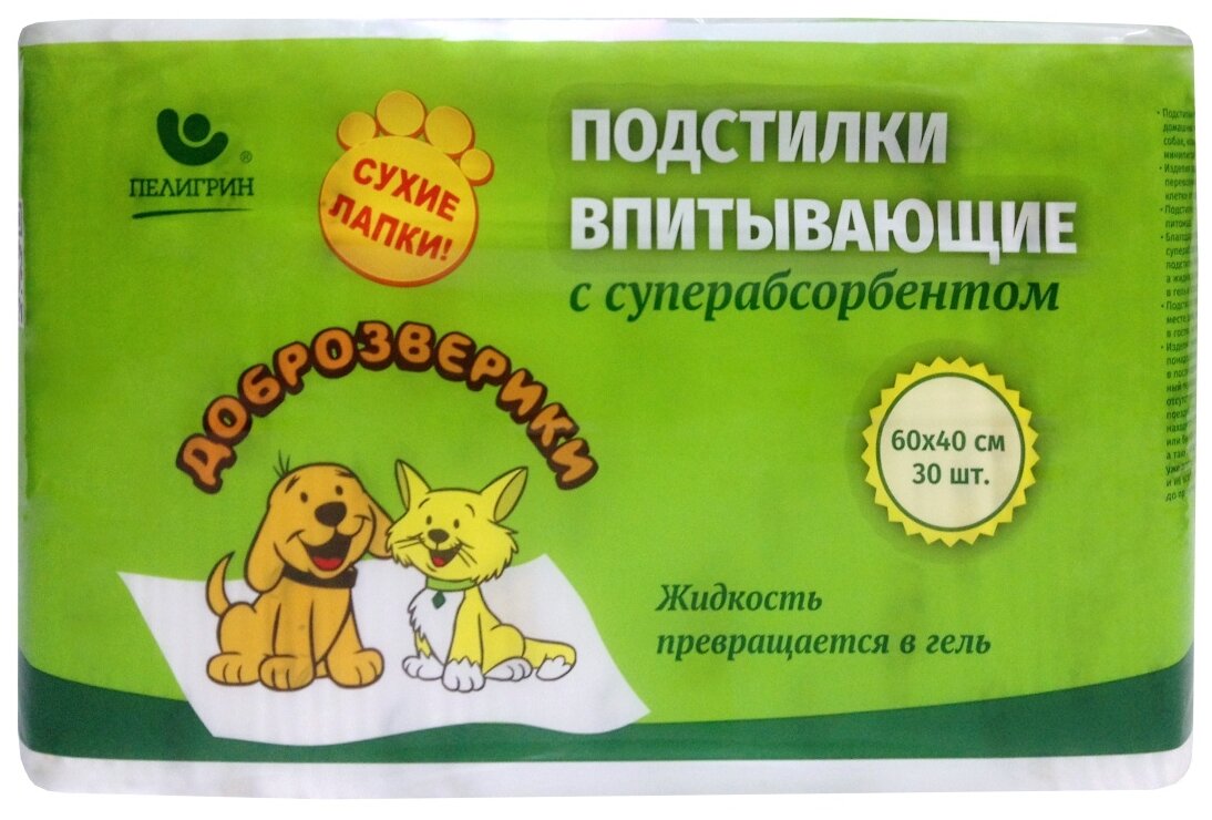 Пелигрин Доброзверики Подстилки впитывающие д/животных с суперабсорбентом 60*40*12шт