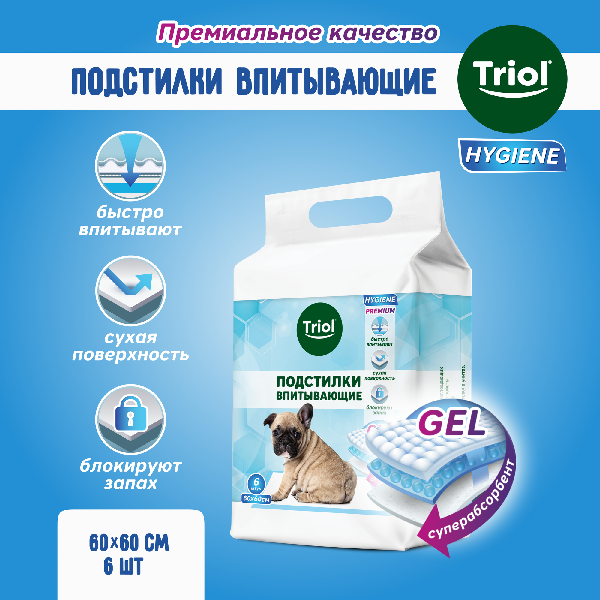 Triol подстилки впитывающие, 600х600 мм, 6 шт