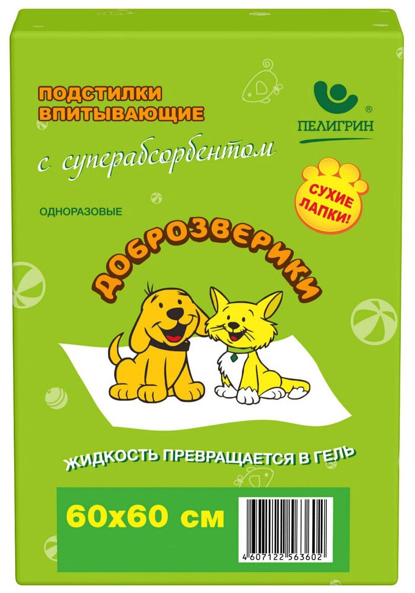 Пелигрин Доброзверики Подстилки впитывающие д/животных с суперабсорбентом 60*60*5шт