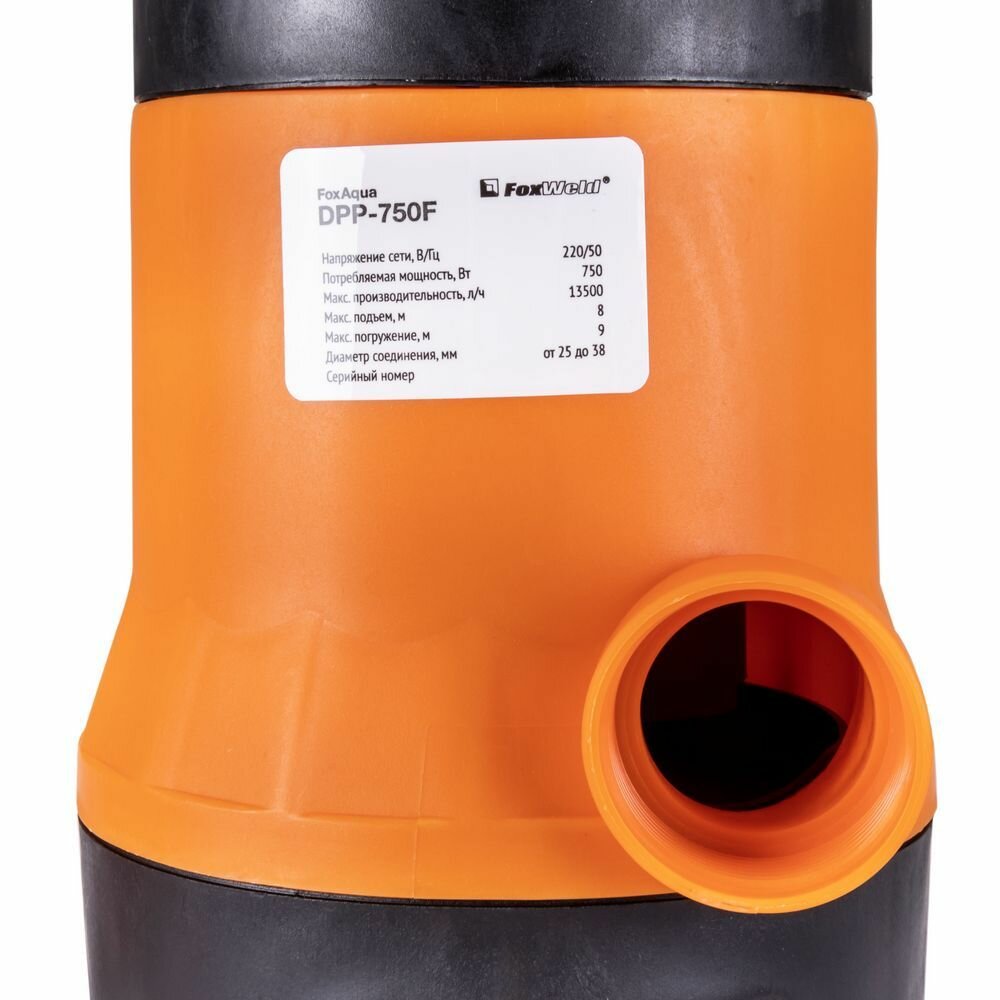 Погружный дренажный насос FoxWeld FOXAQUA DPP-750F, (13500 л/ч, 750 Вт) (6582)