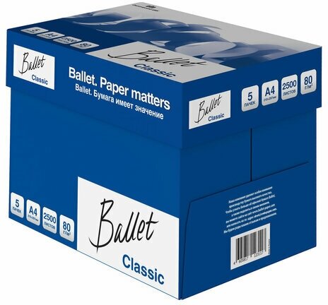 Бумага Ballet "Classic" А4, 80г/м2, 500л., 153%, упаковка 5 шт.