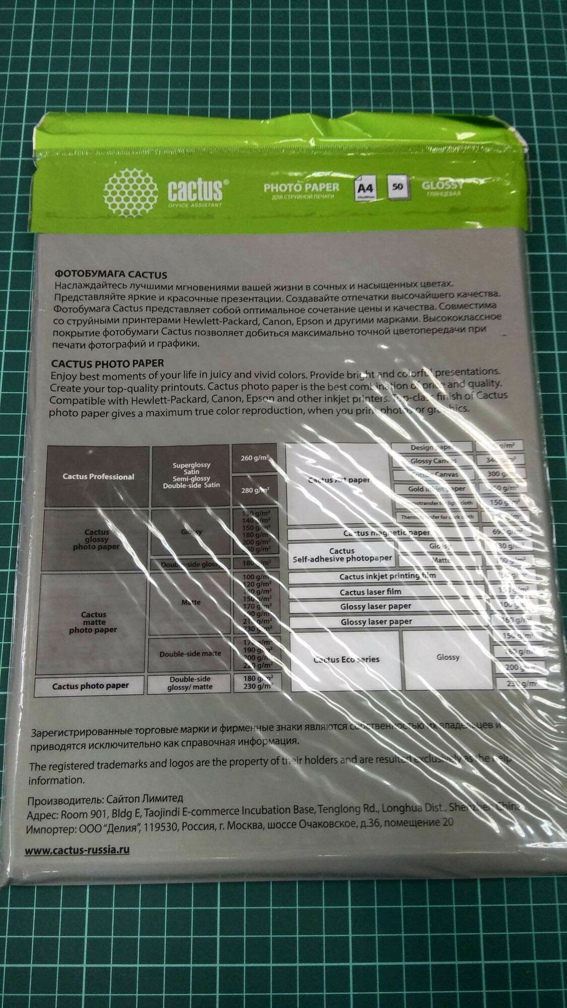 Ниже Вы можете прочитать отзывы на Фотобумага для принтера Cactus CS-GA423050ED 230г/м2 А4 50л глянцевая, ознакомится с подробными характеристиками, посмотреть интересные обзоры и фотографии на Фотобумага для принтера Cactus CS-GA423050ED 230г/м2 А4 50л глянцевая.